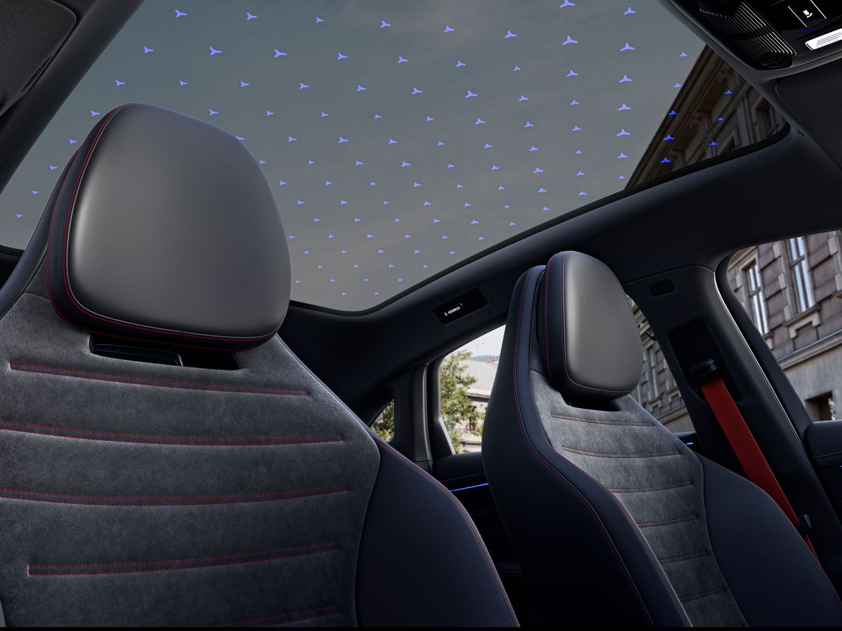 Med det innovative SKY CONTROL panoramaglastag skaber du din egen stemning i kabinen - blandt andet med 162 integrerede lysende stjerner, der følger den valgte ambientebelysning og giver en helt særlig atmosfære. På vejen leverer den elektriske C-Klasse en sjælden balance mellem dynamik og komfort. Bagakselstyring gør den mere agil end nogensinde, mens AIRMATIC luftaffjedring sikrer en rolig og stabil køreoplevelse. Effektivitet er tænkt ind i alle detaljer. Avanceret aerodynamik, varmepumpe og intelligent energistyring maksimerer rækkevidden, mens 800-volt teknologi og hurtig opladning gør det nemt at være på farten.