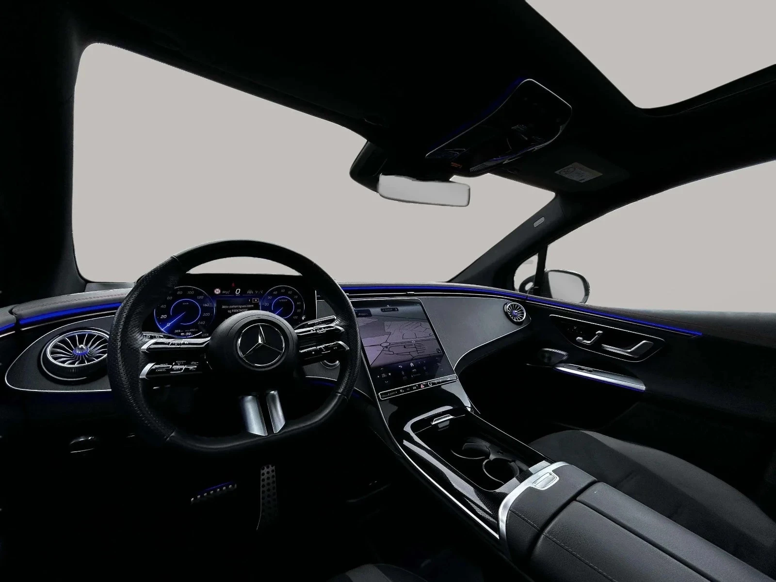 Der er ultimativ kamp om førstepladsen mellem de utallige gennemførte AMG Edition-detaljer, som pragtfuldt pryder EQE SUV’ens kabine, men blandt de mest iøjefaldende af slagsen er helt klart MBUX Hyperscreen, der for alvor stjæler rampelyset i det betagende luksuskøretøj. I et smukt samspil med den fristående centerkonsol, jet-inspirerede turbineformede luftdyser og det stemningssættende ambientebelys med hele 64 farvekombinationer, som indbydende indrammer cockpittet, forener Mercedes-Benz luksuskomfort af allerøverste hylde og SUV'ens praktiske natur. Den imponerende suite af køreassistenter såsom aktiv blindvinkelsassistent og aktiv afstandsassistent sørger for, at der ingen slinger i valsen er, og at du altid er i centrum af en luksuriøs køreoplevelse, når du finder din plads i komfortsædet.